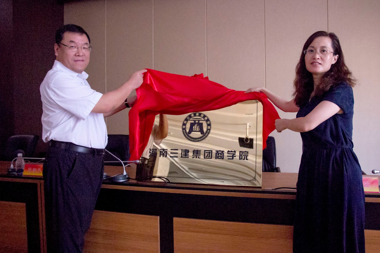 集團(tuán)公司董事長(zhǎng)、河南三建集團(tuán)商學(xué)院黨委書(shū)記張超鄭重宣布——河南三建集團(tuán)商學(xué)院成立,并與洛陽(yáng)理工學(xué)院副校長(zhǎng)丁梧秀教授共同為河南三建集團(tuán)商學(xué)院揭牌。